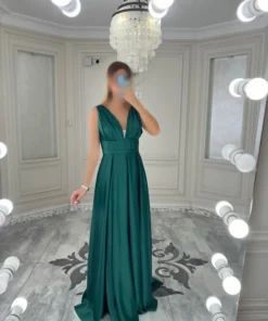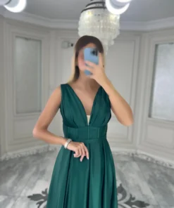 پیراهن ساتن ماکسی یقه پاپیونی کد 0040250