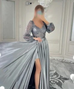 پیراهن ماکسی ساتن پفی روبازویی کد 00403292