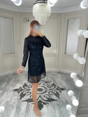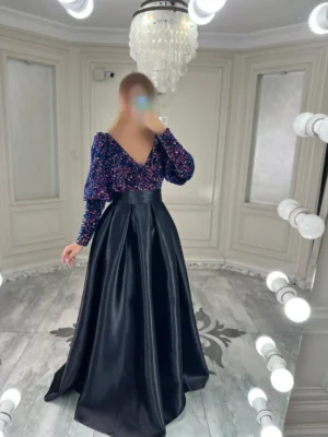 پیراهن ماکسی مخمل پولکی کد 0040452 - پاپیون مزون