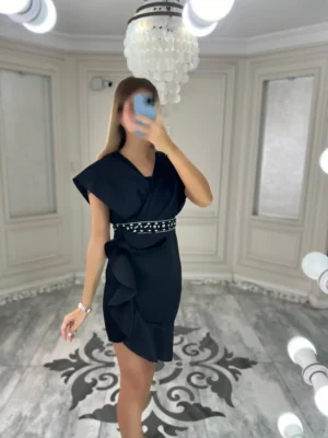 پیراهن میدی غواصی کمر نگین کد 00403214 - پاپیون مزون