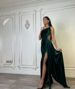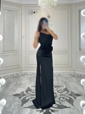 ماکسی دکلته ساتن بغل گل کد 2679 - پاپیون مزون