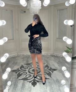 پیراهن کوتاه مخمل تک آستین کد 2716/2 - پاپیون مزون
