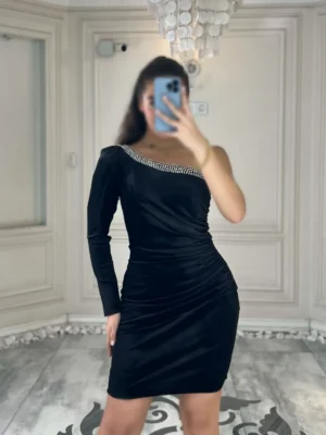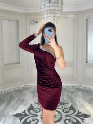 پیراهن کوتاه مخمل تک آستین کد 2716/2