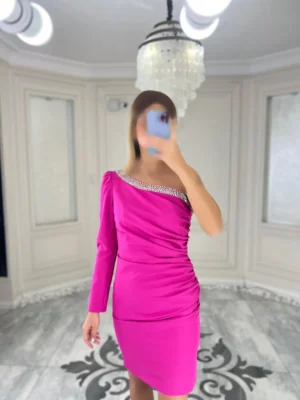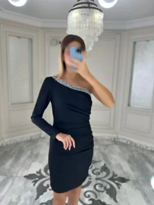 پیراهن کوتاه تک آستین نگین کد 2716 - پاپیون مزون
