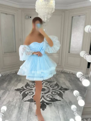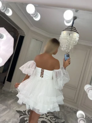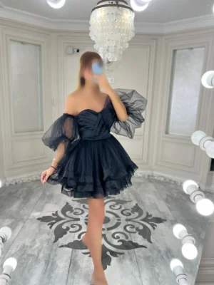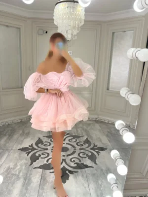 پیراهن عروسکی توری آستین دار کد 2963