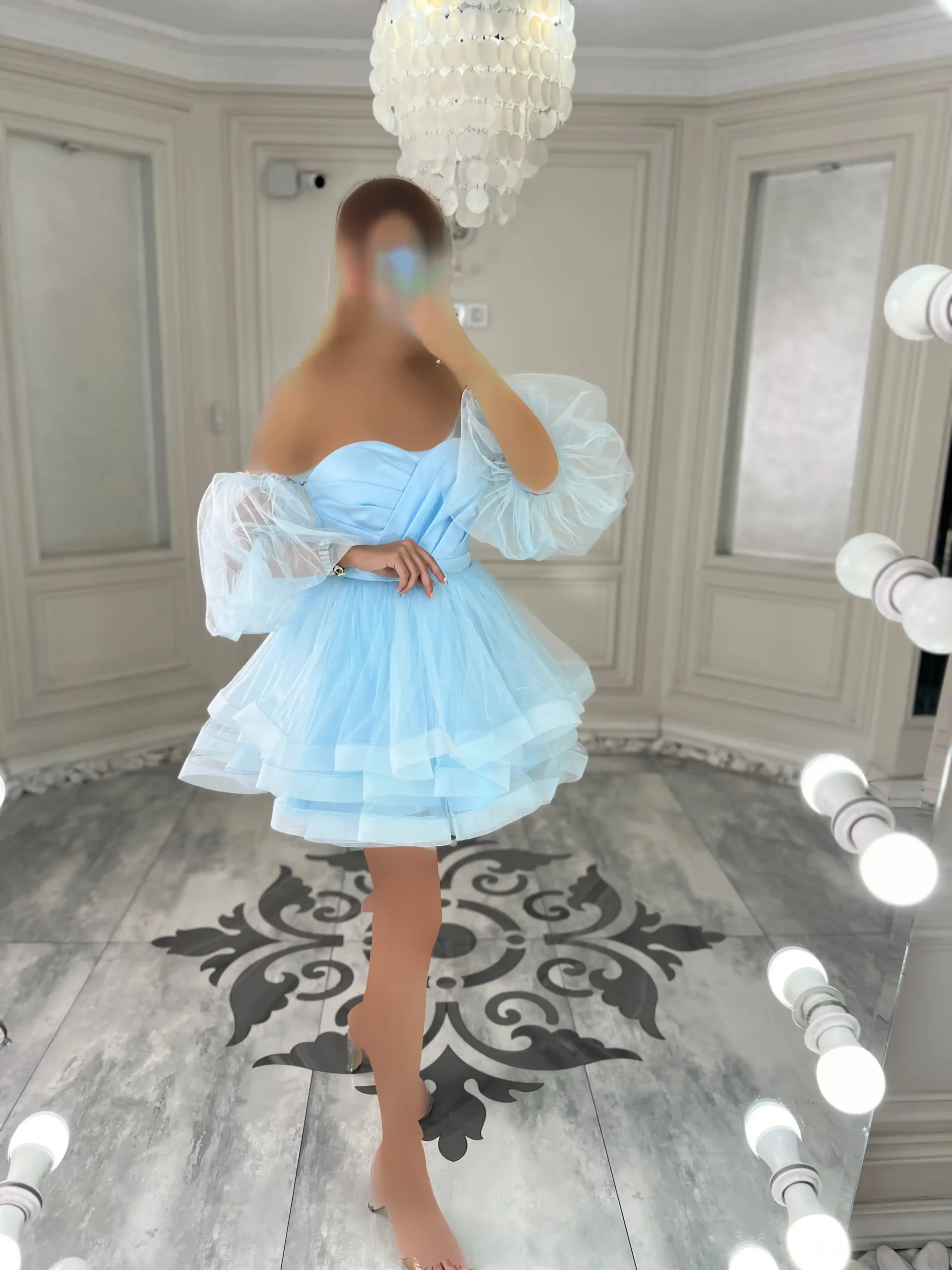 پیراهن عروسکی توری آستین دار کد 2963 - پاپیون مزون
