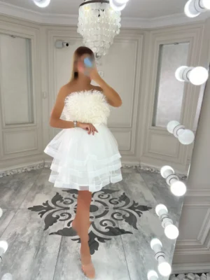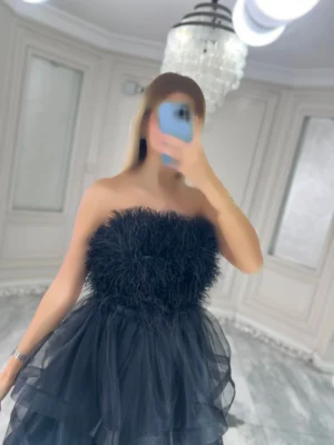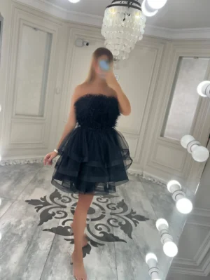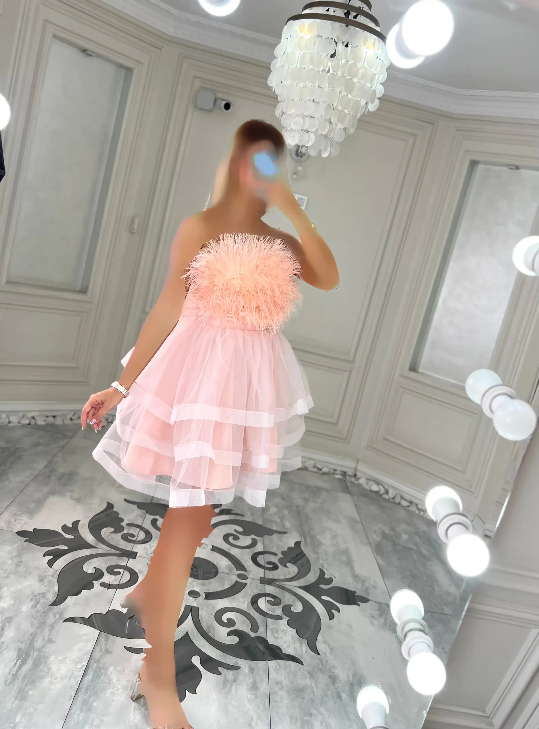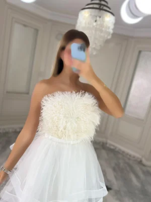 پیراهن عروسکی دکلته بالا پر دار کد 3143 - پاپیون مزون