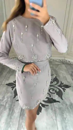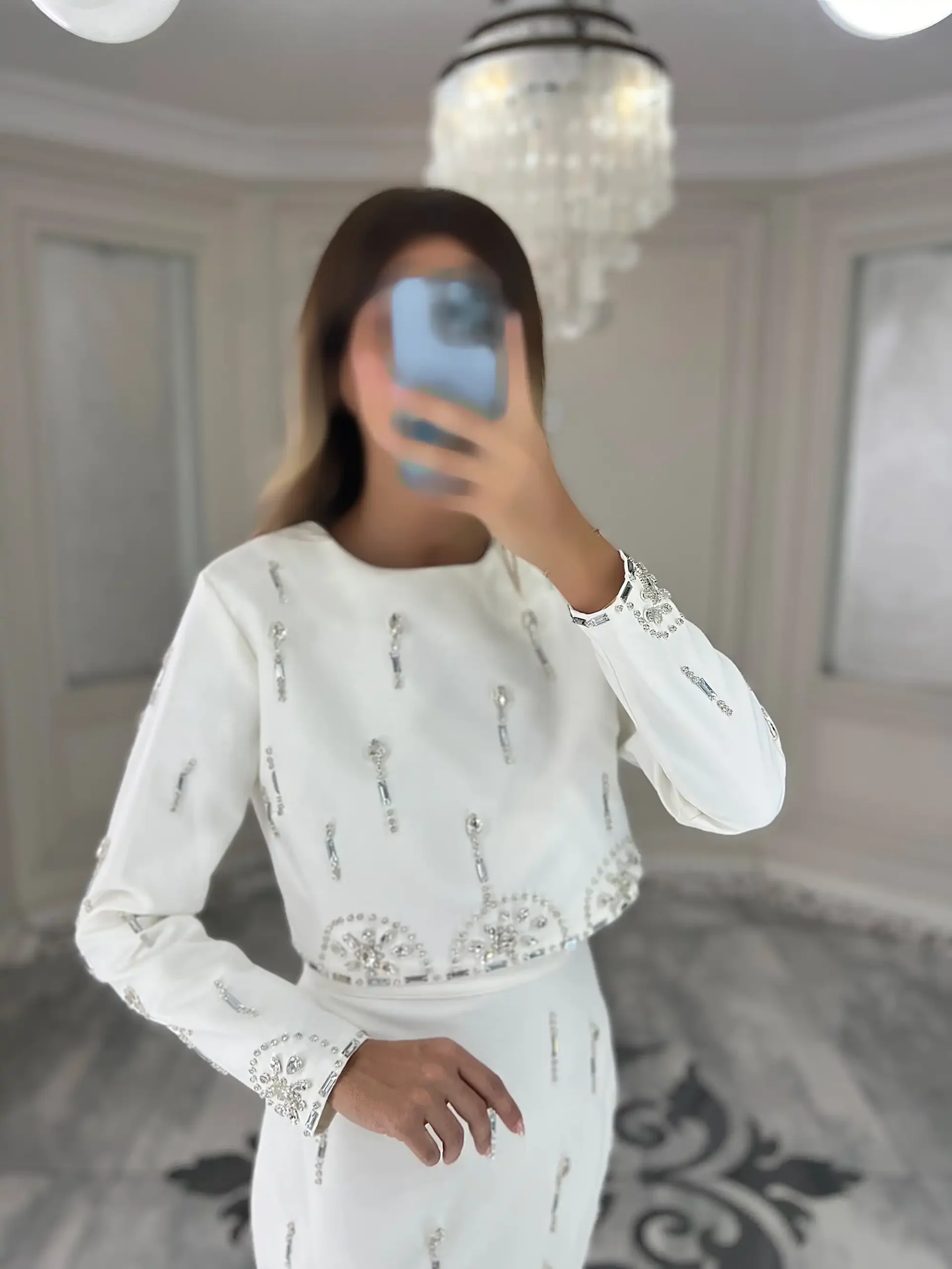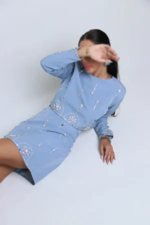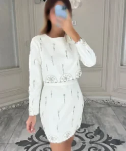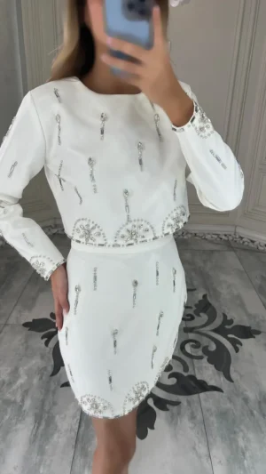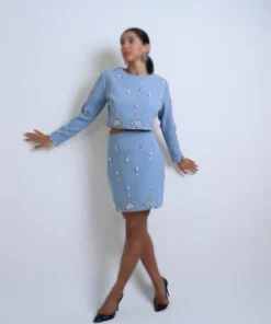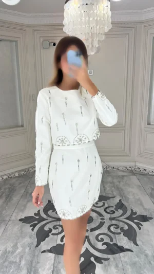 کراپ و دامن کار شده کد 3203 - پاپیون مزون
