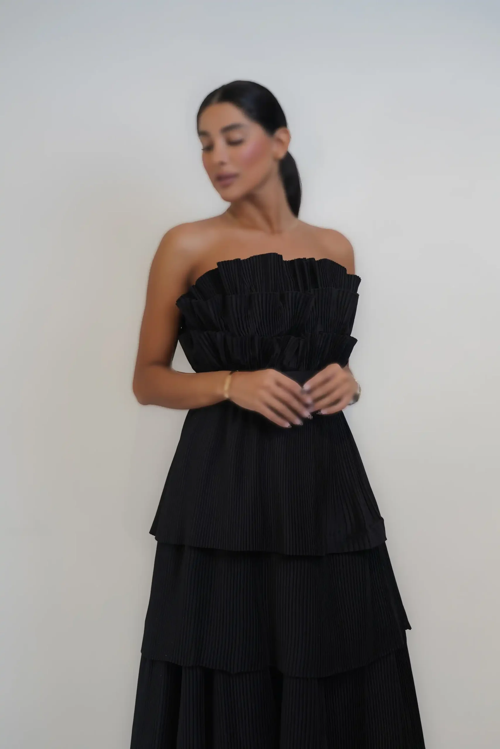 ماکسی دکلته پلیسه چین دار کد 3210 - پاپیون مزون