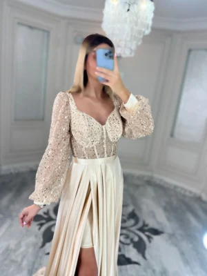 پیراهن ماکسی بالا تنه کار شده کد w71 - پاپیون مزون