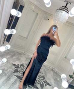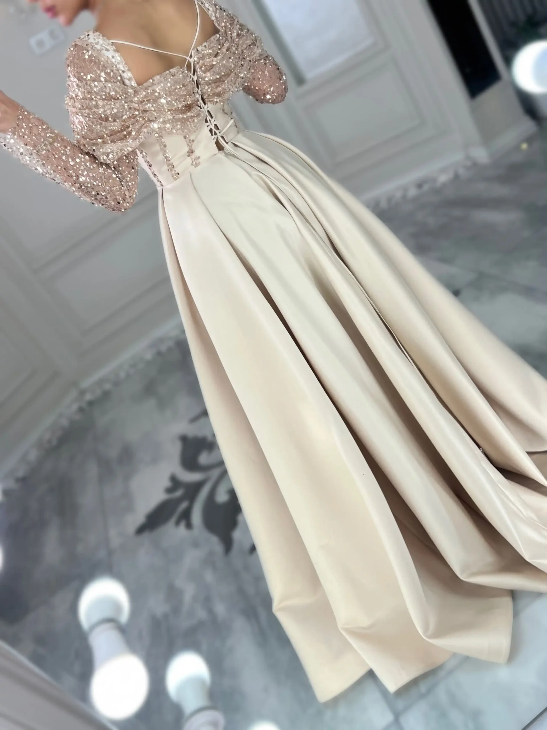 پیراهن ماکسی بالا پولکی پایین ساتن کد Z38 - پاپیون مزون